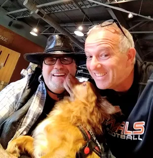 | My brother Robby and I at Todd's funeral. And his dog Bear Bear. |